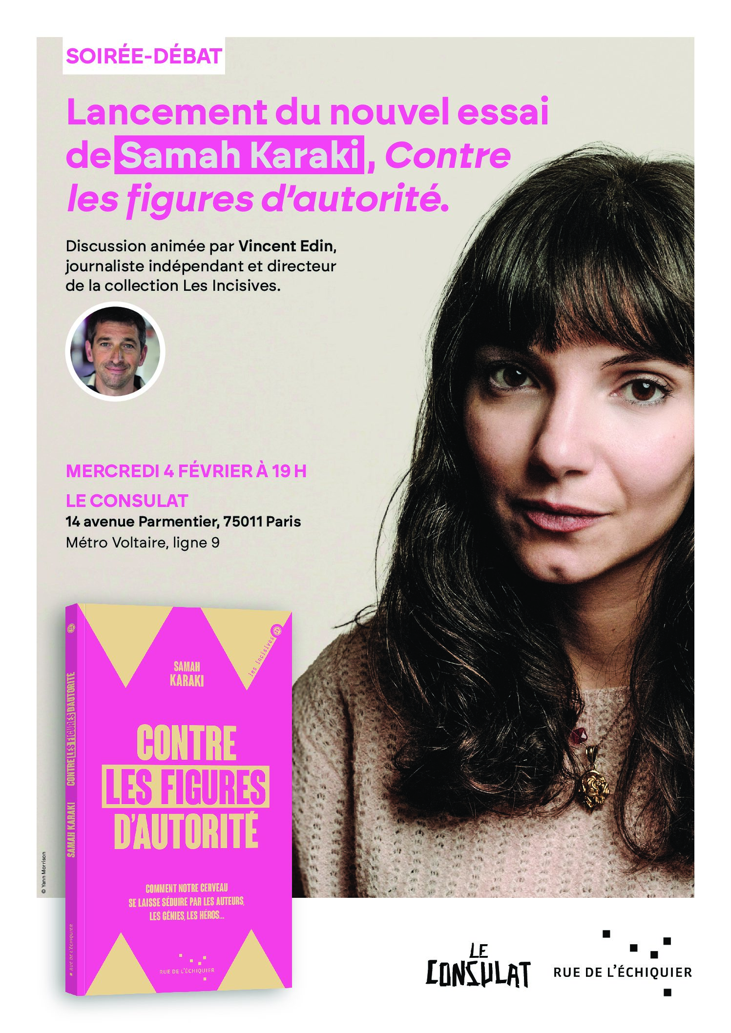 CULTURE – Lancement du livre « Contre les figures d’autorités » de Samah Karaki Le mercredi 4 février, à 19 heures, Le Consulat Voltaire ... 04 Fév 19 h 00 min