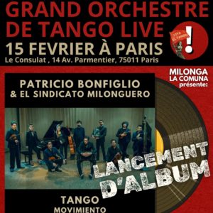 DANSE – MILONGA Patricio Bonfiglio & El Sindicato Milonguero. Grand orchestre de Tango, composé ... 15 Fév 18 h 00 min