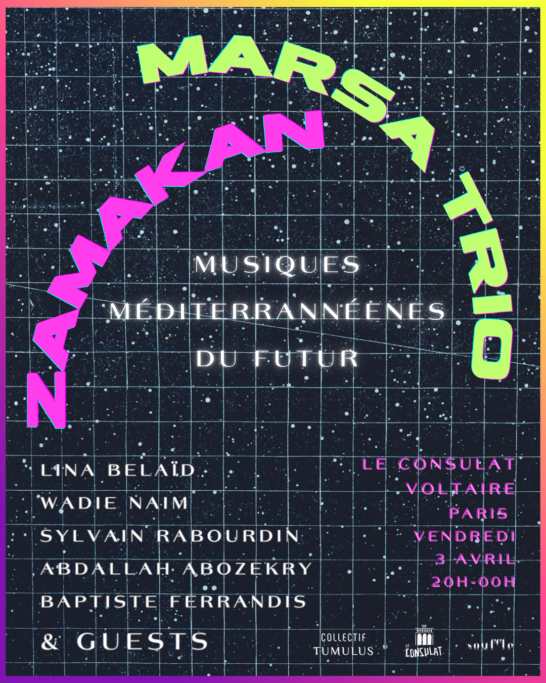 Le trio Marsa, Zamakan et leurs invité.es célèbrent ce vendredi 3 avril la Méditerranée du futur au Consulat.