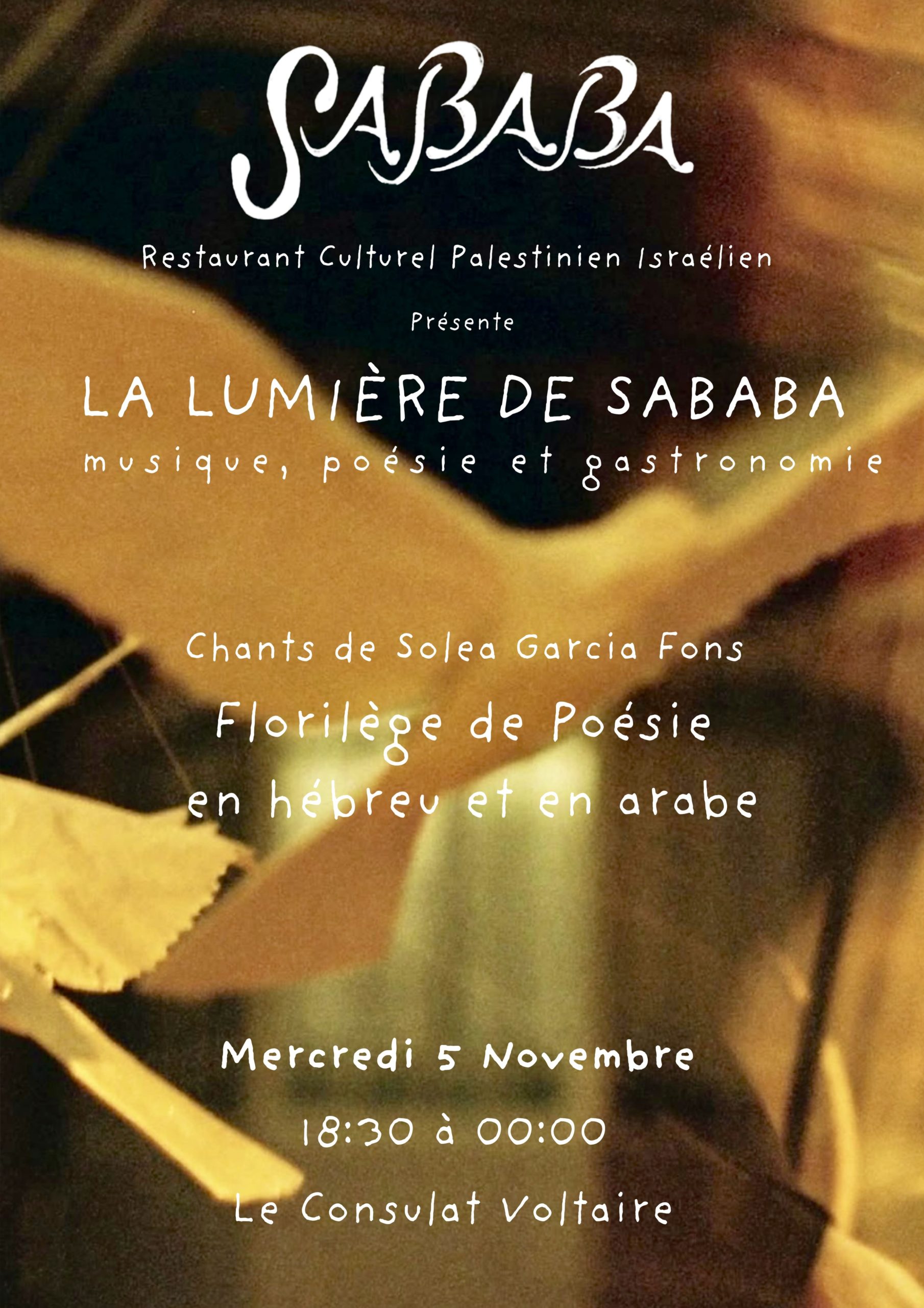 La première, intitulée La Lumière de Sababa, mettra en lumière ce projet unique lors d’une soirée à la croisée de la gastronomie, de la poésie et de la musique.