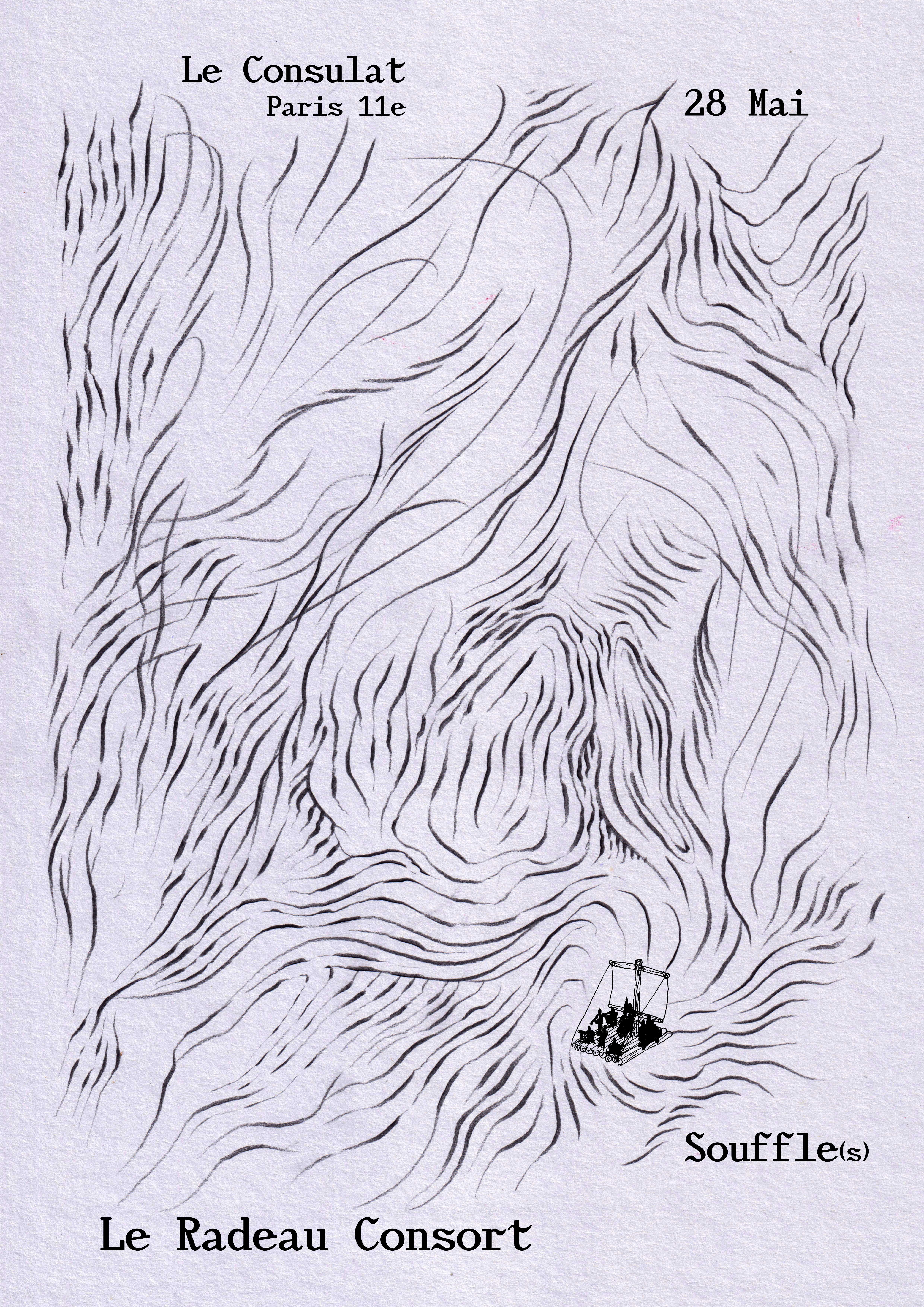 Pour la première fois, l’équipage du Radeau embarque dans sa forme « Grand Consort », composé de 14 musicien.nes. L’espace d’une soirée, le Consulat Voltaire sera le théâtre d’un concert pensé comme une traversée : déployé comme une forme modulaire composée de huit tableaux musicaux, comme autant de paysages qui apparaissent et se transforment au fil du voyage. Les musicien.nes s’y retrouvent, s’y déplacent, s’y mêlent. Entre écriture, improvisation et jeu d’ensemble, le concert devient un parcours fait de perspectives multiples, porté par l’énergie du groupe et de ses invité.es, où les imaginaires individuels se rencontrent. Un radeau où circulent les idées, les sons et les gestes, porté par l’écoute et le jeu partagé.