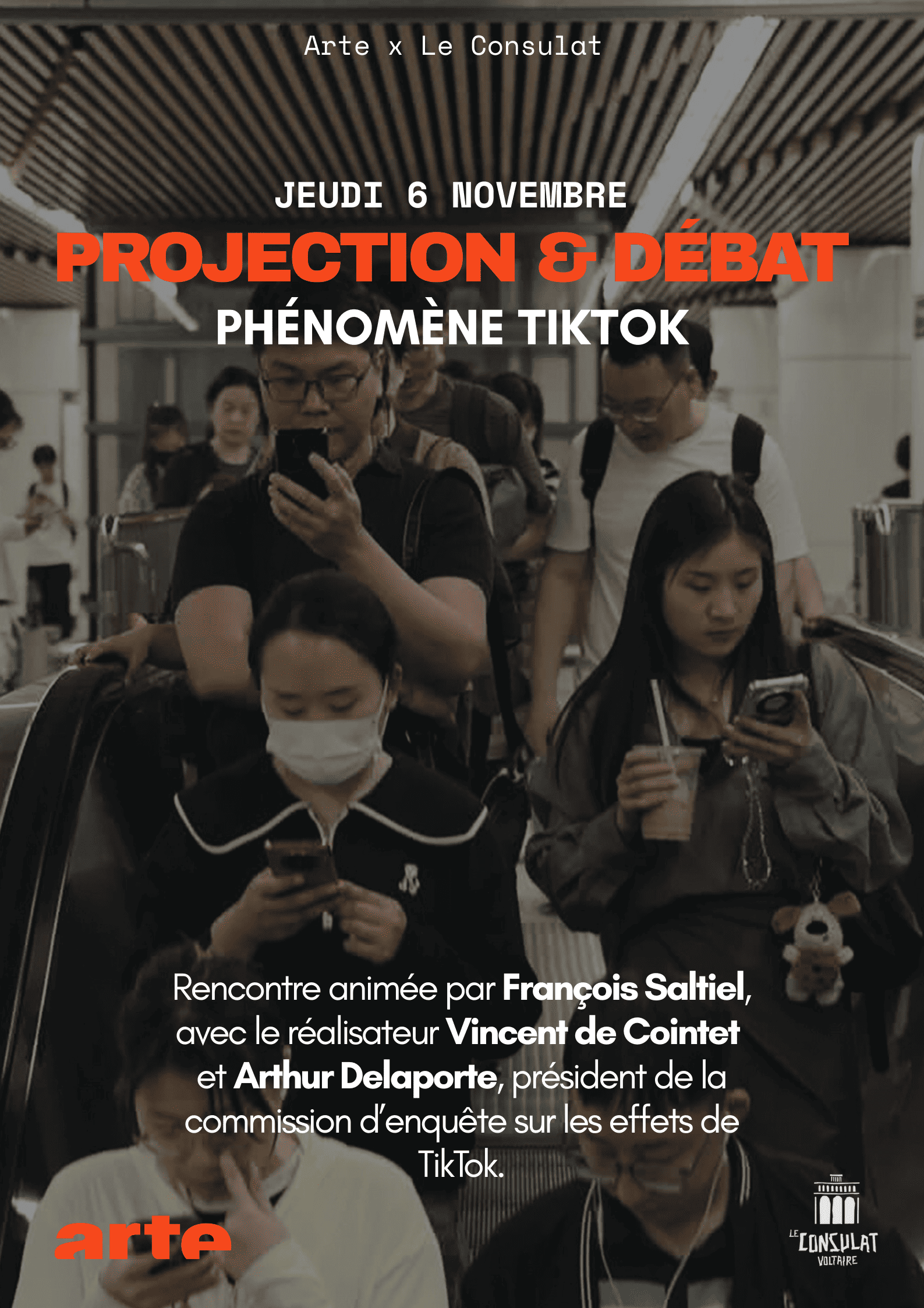 Dans la continuitée de leur première collaboration, le Consulat Voltaire et ARTE présentent une nouvelle soirée de projection-débat, autour du documentaire de Vincent de Ciontet Tiktok – Un Réseau sous influence, qui explore les enjeux géopolitiques et culturels de la plateforme la plus téléchargée au monde.