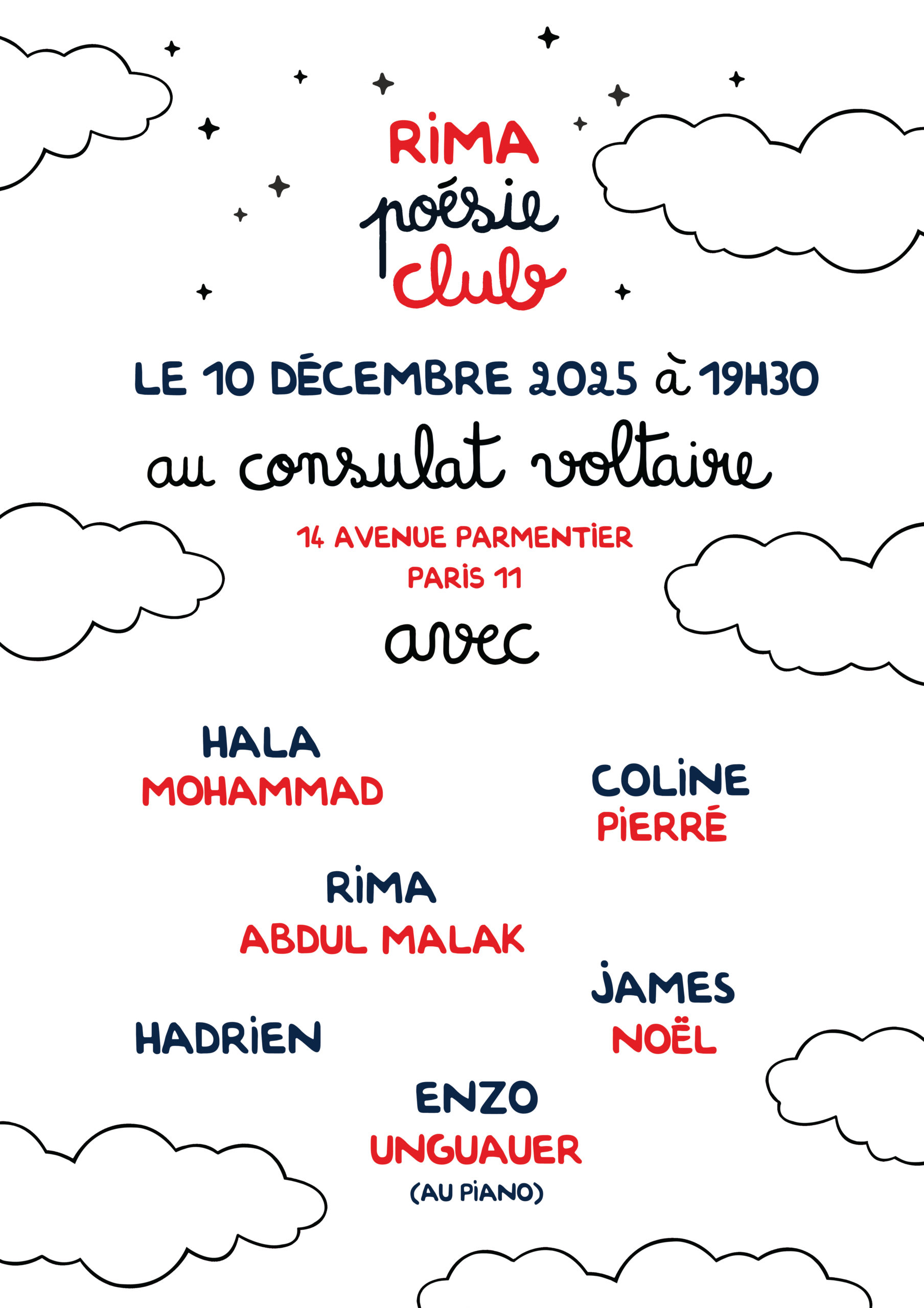 Fondé en 2023 par l’ancienne ministre de la Culture, le Rima Poésie Club s’est installé en 2025 au Consulat Voltaire et vous donne rendez-vous pour une nouvelle session le 10 décembre.