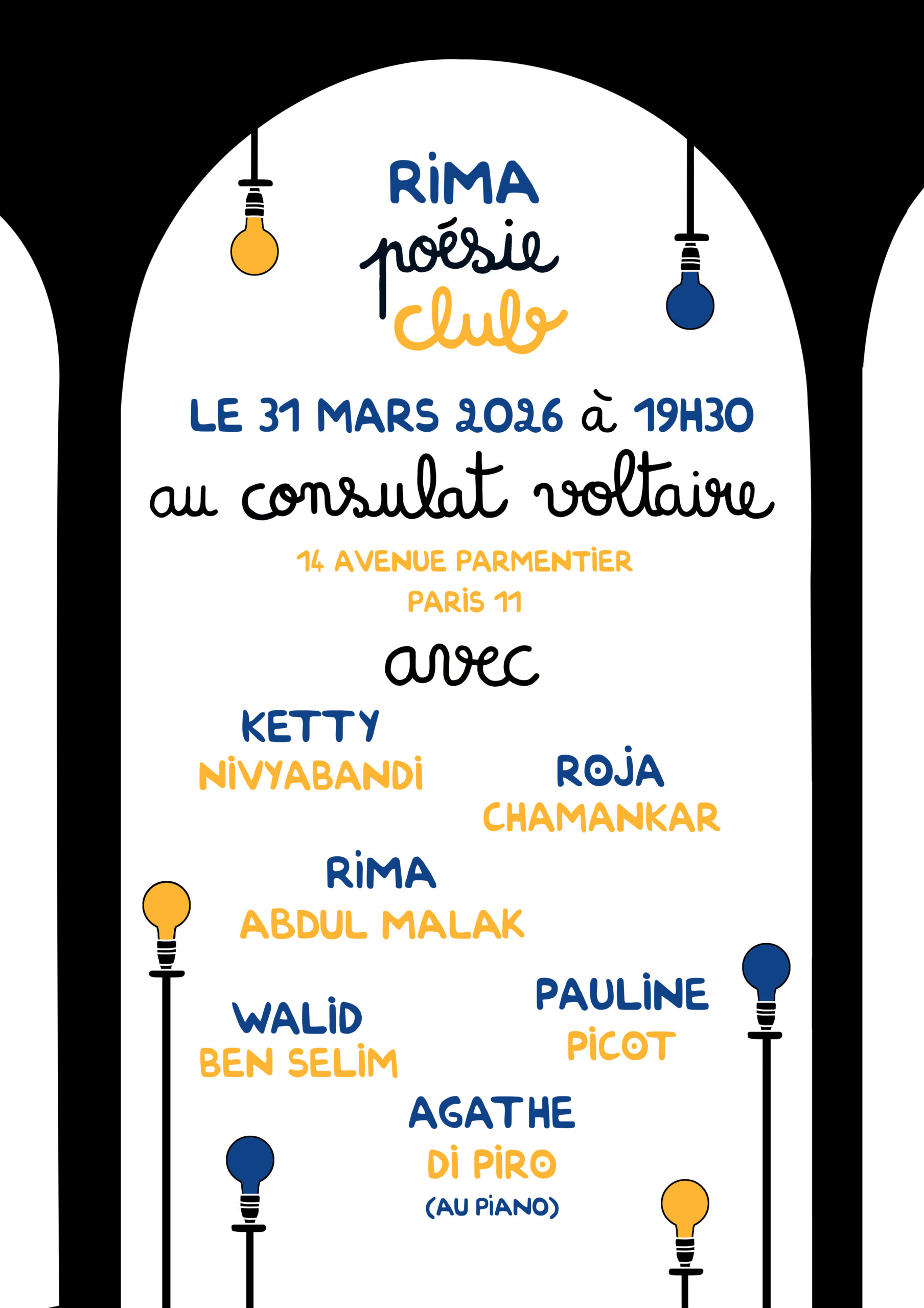 Fondé en 2023 par l’ancienne ministre de la Culture, le Rima Poésie Club s’est installé en 2025 au Consulat Voltaire pour un rendez-vous trimestriel.