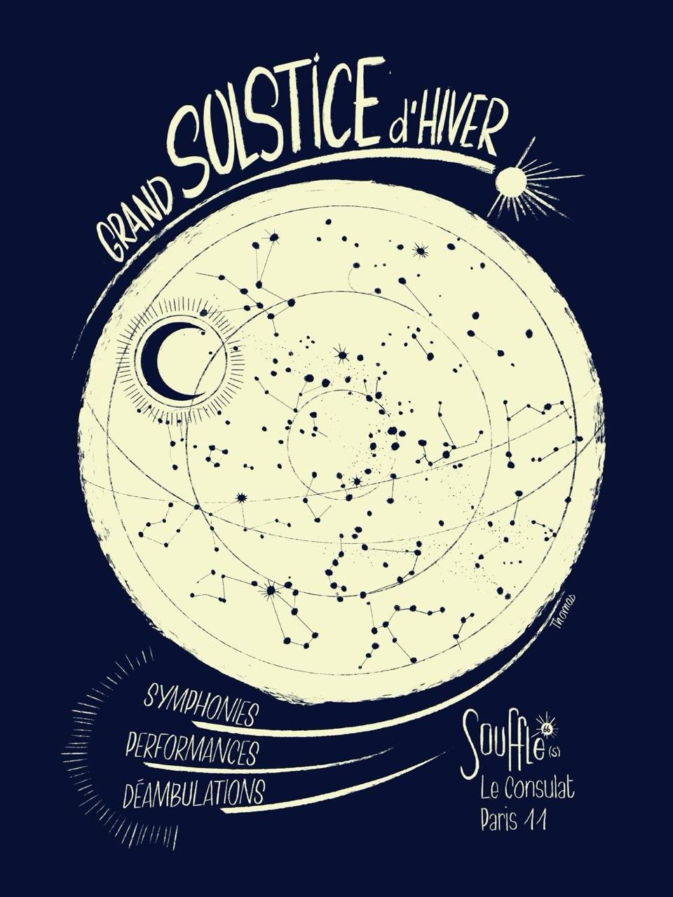 Rituel de clôture de la saison, Souffle convie au Consulat une constellation de musicien·ne·s et artistes pour célébrer le passage du Solstice d’hiver.