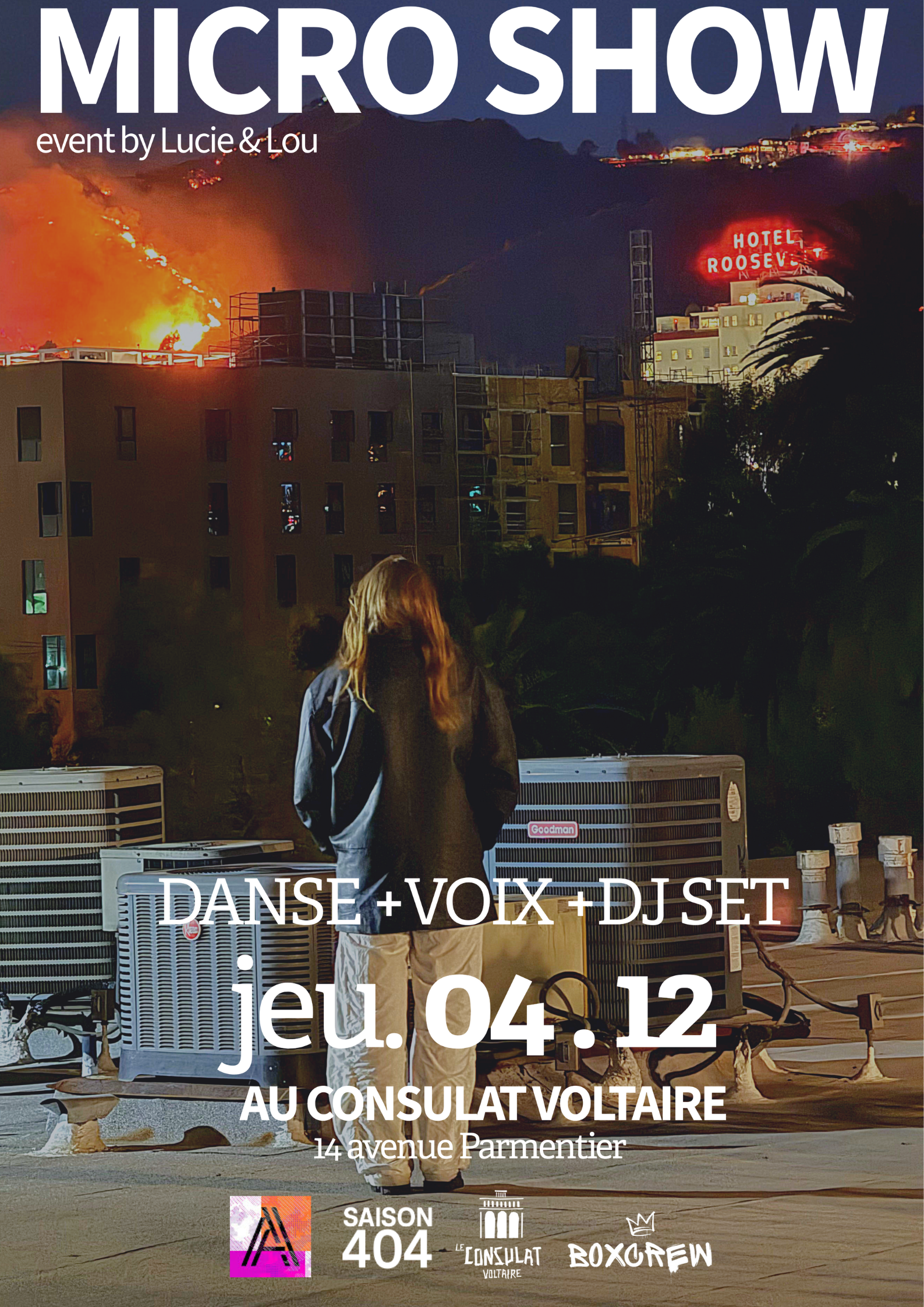 • La réactivation en version XXL de MICRO-SHOW, performance chorégraphique née à Los Angeles et amplifiée par des danseurs et danseuses locaux ;